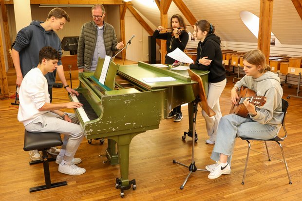 Selbst Musik zu machen ist etwas, was du dein ganzes Leben geniessen kannst. Bei uns hast du die Möglichkeit, durch gemeinsames aktives Singen und Musizieren, die Musik in verschiedensten Erscheinungsformen und Stilrichtungen zu erproben und zu erleben. Du lernst in der Band zu spielen, Musik bewusst zu Hören und zu reflektieren, eigene Songs zu schreiben und Musik zum Klingen zu bringen. Übergeordnetes Ziel ist eine musikalische Grundausbildung, ausgerichtet auf Förderung deiner Kreativität, performativen Fertigkeiten und kulturellen Bildung.