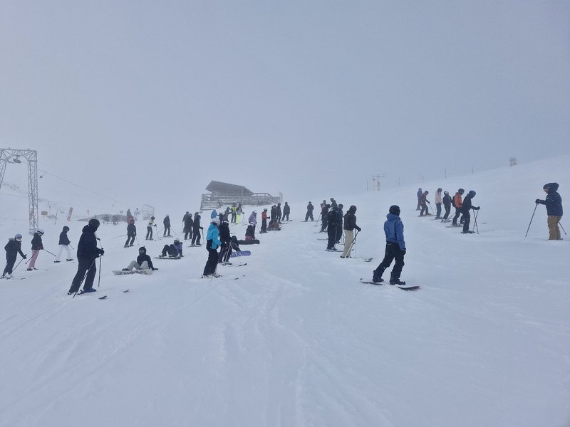 Am Sonntagmorgen startete unser Schneesport-Abenteuer mit der Zugreise von Zürich nach Davos. Über 50 Schüler*innen der Kantonschule Enge sowie vier Lehrpersonen und vier externe J&S-Leiter*innen waren mit dabei. Nach unserer Ankunft deponierten wir unser Gepäck im Lagerhaus – und schon ging es los auf die Piste. Strahlender Sonnenschein und perfekte Schneebedingungen machten den ersten Tag zu einem grossartigen Einstieg, die Freude war allen ins Gesicht geschrieben. Auch wenn das Wetter in den darauffolgenden Tagen nicht immer ideal war, zeigte es sich weitaus besser als die Prognosen vermuten liessen.