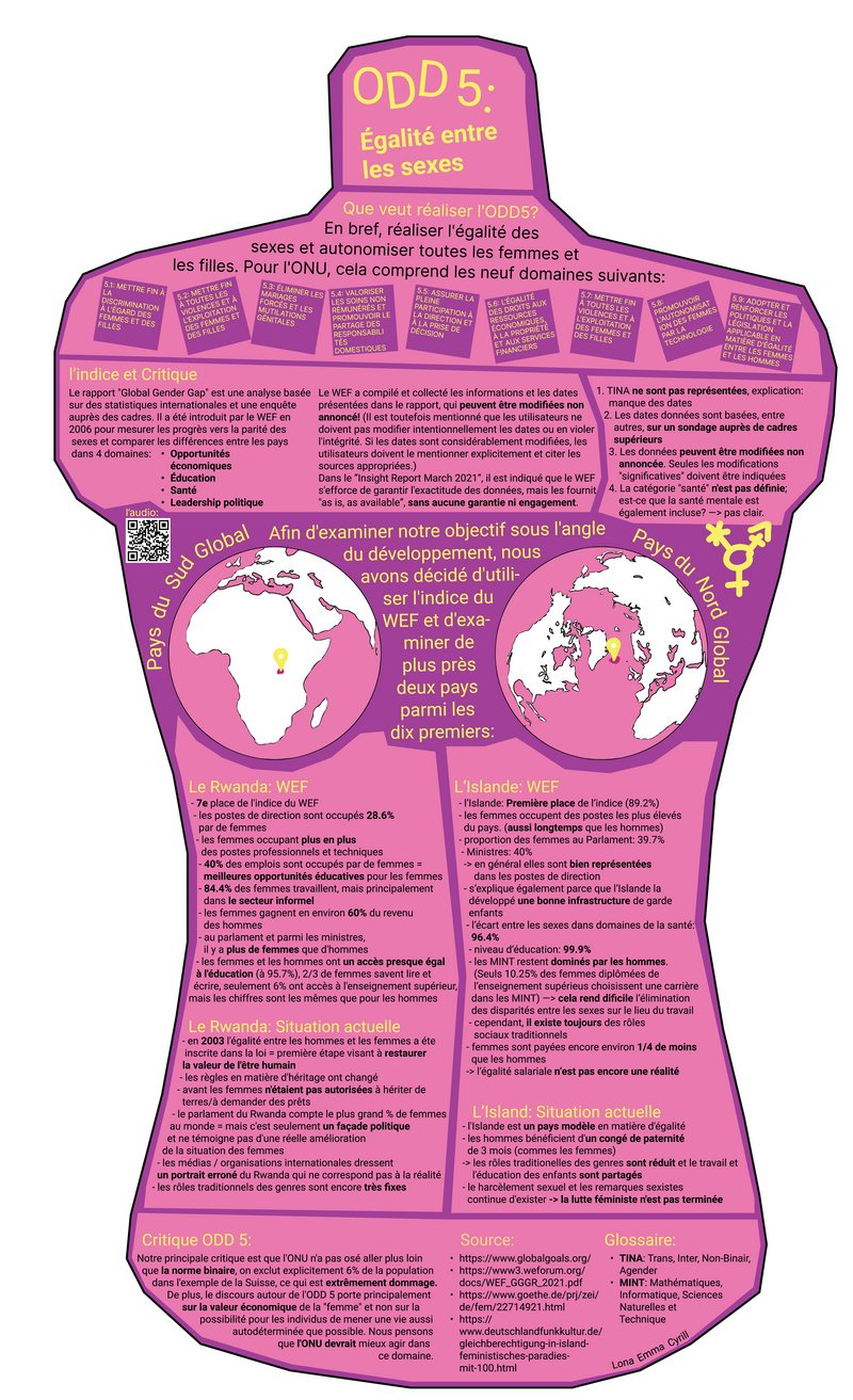 Der Arbeitsauftrag umfasste eine selbstständige Themenauswahl, die im weitesten Sinne mit den SDGs (Sustainable Development Goals) der UNO in Zusammenhang steht und die in Gruppen zu bearbeiten war. So wählten die Schüler*innen Themen wie overtourism oder unterschiedliche Rechtssysteme ebenso wie die Gleichberechtigung der Geschlechter, die Überfischung oder Gesundheit im informellen System. Die eigene Themensetzung führte zu einer höheren Eigenmotivation, da die Schüler*innen sich vertieft mit etwas auseinandersetzen konnten, dass sie selbst bestimmt hatten.